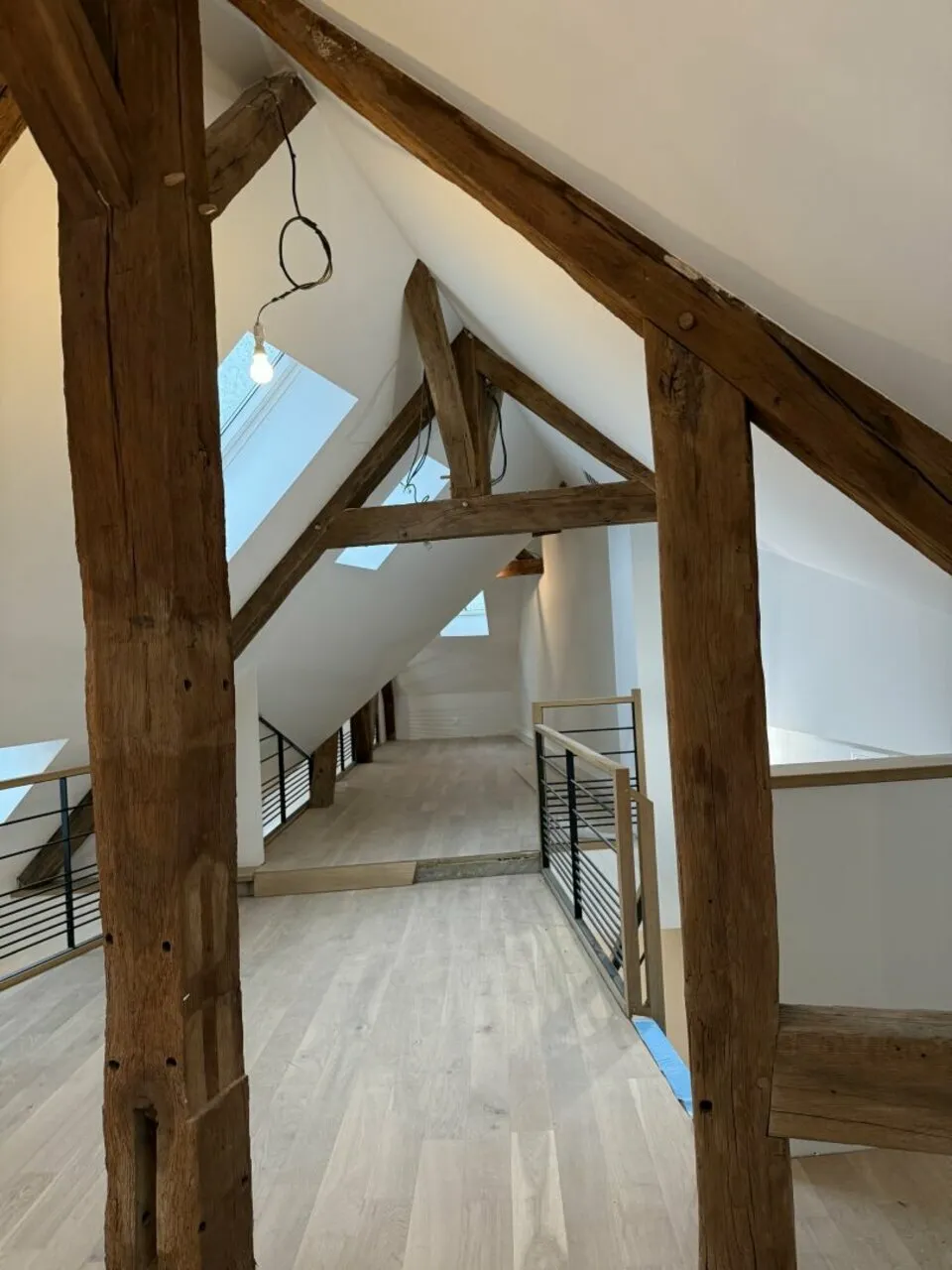Vous bénéficiez d'un premier plateau de bureaux de 75,74 m² (73,48 m² Carrez), offrant un espace de travail spacieux et fonctionnel. Depuis ce niveau, un accès direct mène à une mezzanine d'une superficie totale de 46,09 m² (33,66 m² Carrez).